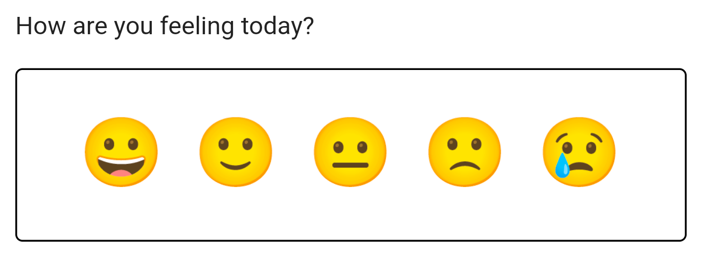 Put your emojis in the options field, seperated by a | character, for example, like 'π|π|π|π|π’'.